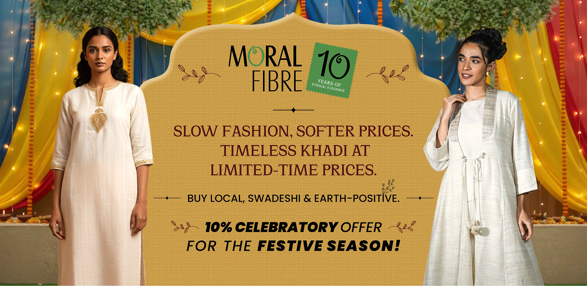 Our collaboration with Khadi India showcases our commitment to reviving traditional handwoven fabrics and supporting Indian craftsmanship.