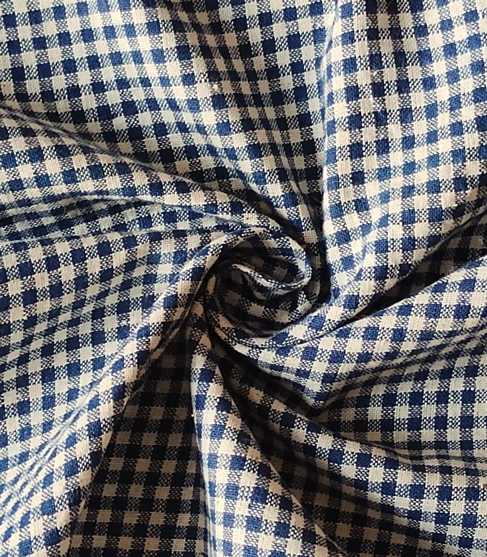 MORALFIBRE 100% Cotton handspun handwoven Blue and Cream Organic Checks fabric