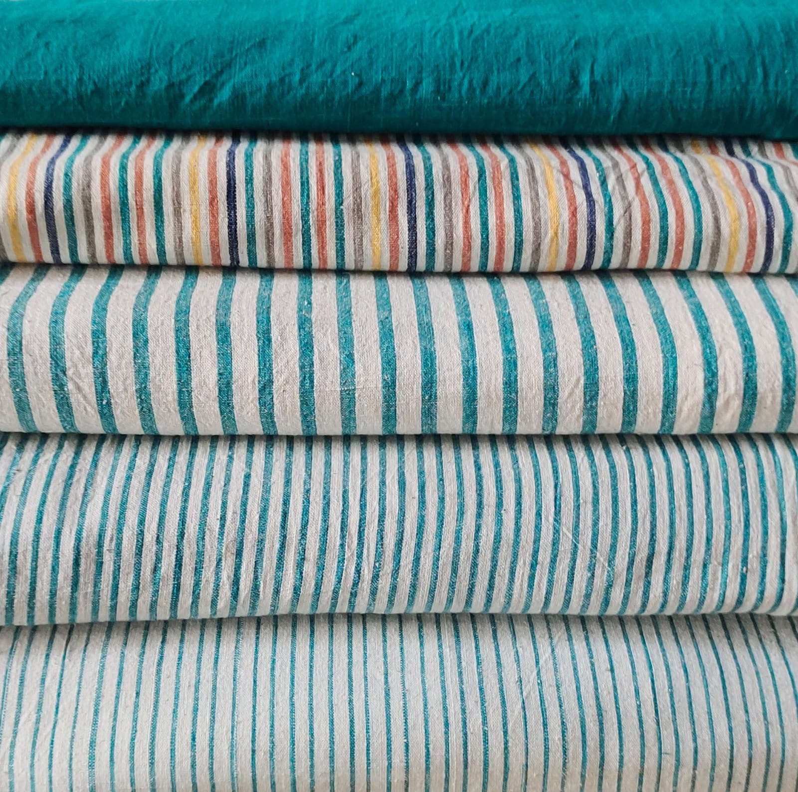 MORALFIBRE 100% Cotton handspun handwoven Cyan Green Textured Yarn Dyed fabric