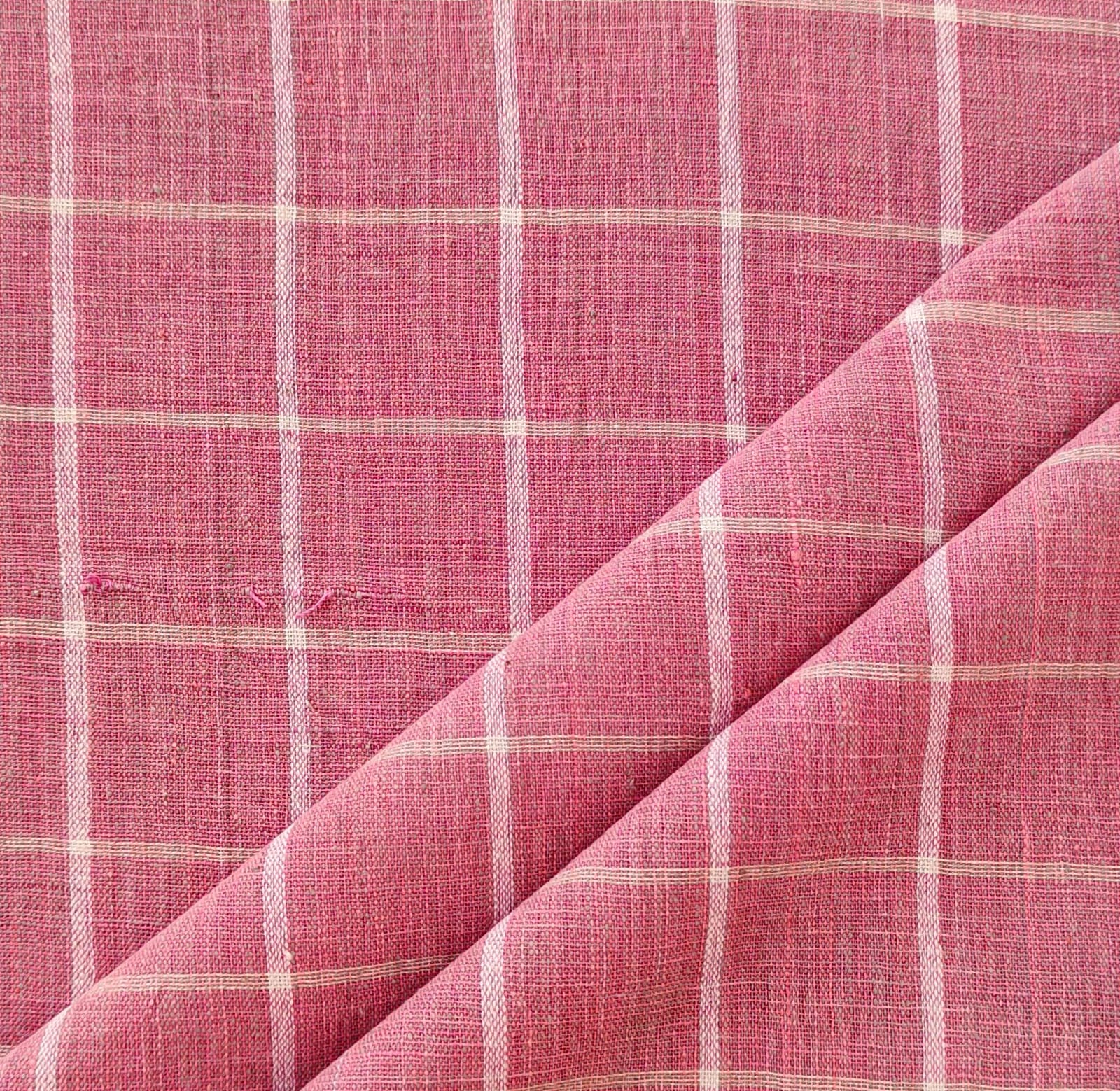 MORALFIBRE 100% Cotton handspun handwoven Pink and Cream 1.5" checks fabric 1.5" checks fabric