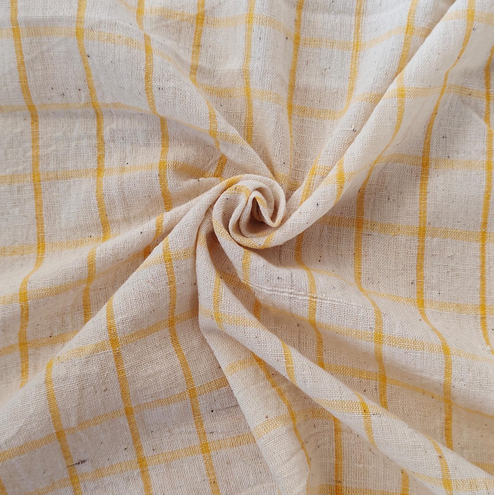 MORALFIBRE 100% Cotton handspun handwoven Yellow 1" checks fabric 1" checks fabric