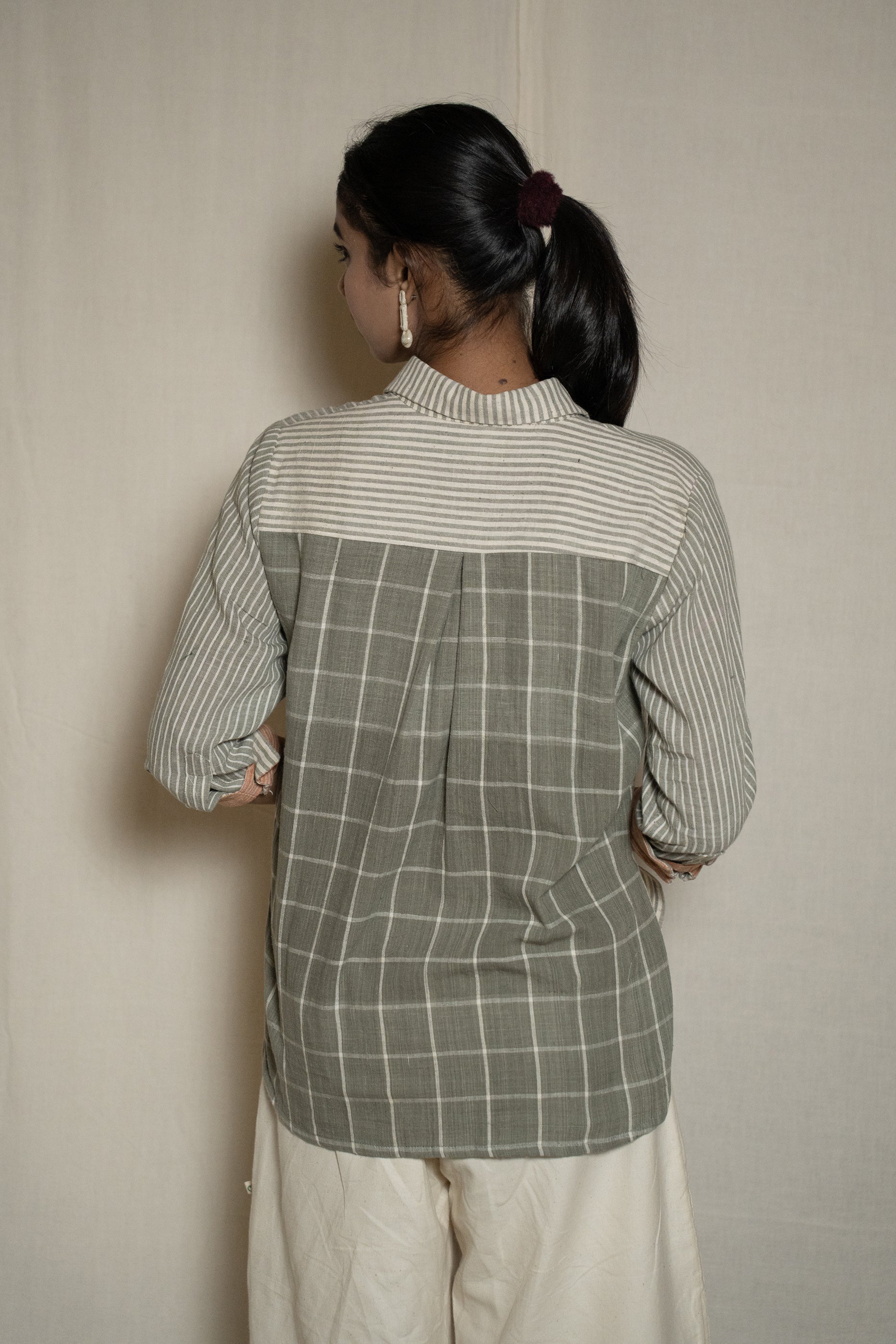 MORALFIBRE WABI SABI GREY SHIRT WITH MULTIPLE TEXTURES & WEAVE