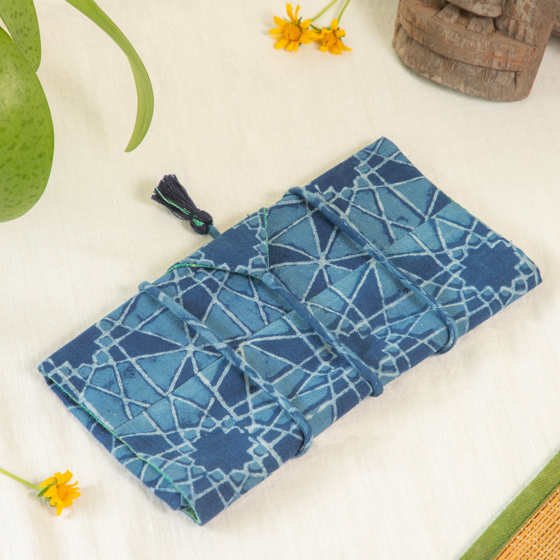 Desk organiser kit with eco-stationery and cable holder in upcycled roll pouch